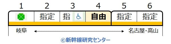 増結する場合の編成は、「6両編成(4両編成増結時の編成)|4号車が自由席」をご覧ください。