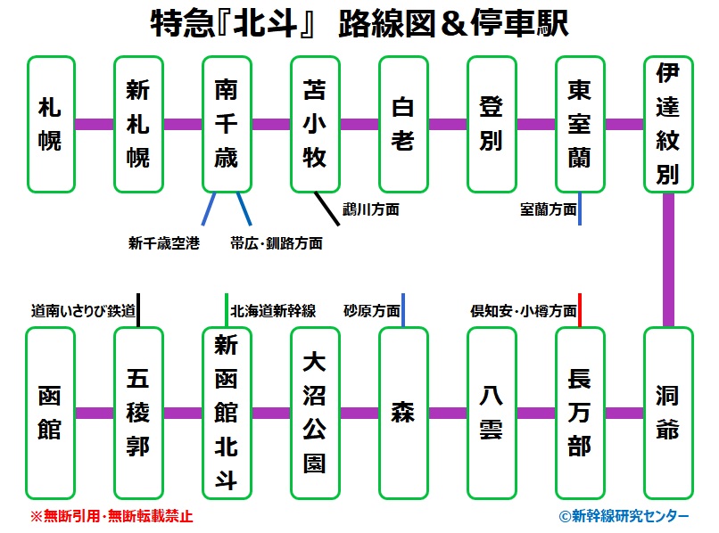 途中の新函館北斗駅では北海道新幹線と相互に乗り換えることができます。
