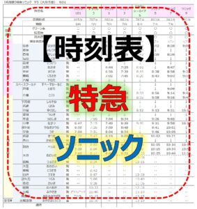 『ソニック』列車別の自由席の号車を調べるのに便利な編成表です。