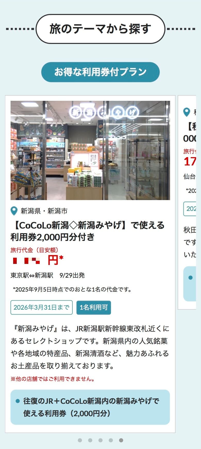 「【CoCoLo新潟◇新潟みやげ】で使える利用券2,000円分付き」の料金